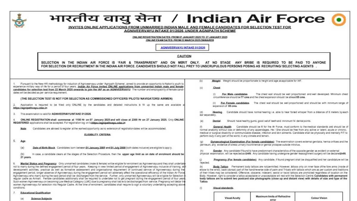 Sarkari Result IAF Agniveer Vayu: अग्निवीर वायु भर्ती के लिए आवेदन करने का एक और मौका, चार अगस्त तक बढ़ी पंजीकरण की तिथि